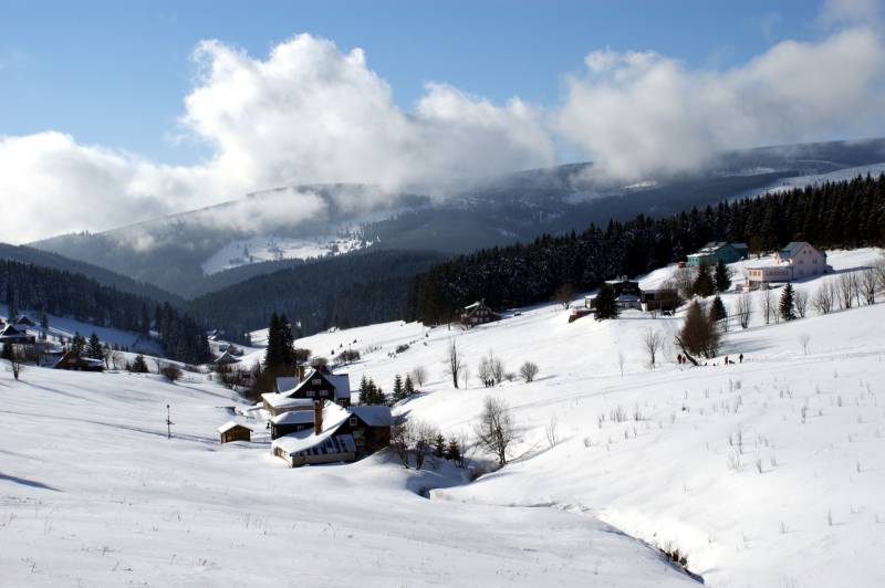 Tuż za Przełęczą Okraj odnaleźć można malowniczo położoną miejscowość Mala Upa z typowymi, chałupami karkonoskimi, rozrzuconymi po zboczach. Pod koniec roku ta spokojna czeska wioska zamienia się w popularne wśród turystów centrum sportów zimowych.