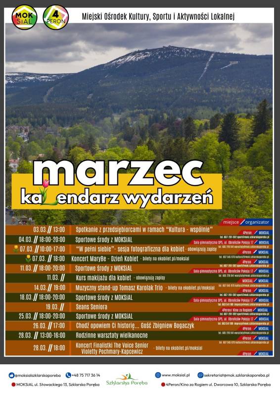 W programie m.in. koncert MaryBe z okazji Dnia Kobiet, koncert finalistki „The Voice Senior” Violetty Pochmary-Kapcewicz, muzyczny stand-up Tomasza Karolaka, spotkania tematyczne,
