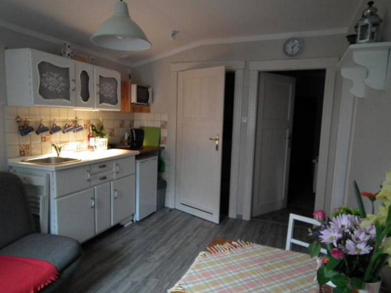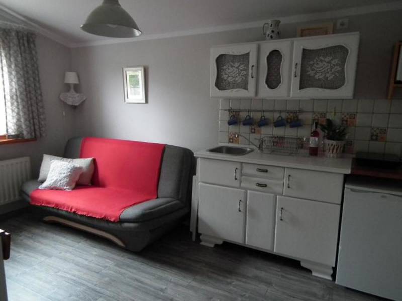 Kitchenette is equipped with: fridge, dishes, cutlery, cooker, microwave oven, cordless kettle. At guests' disposal wireless Internet (Wi-Fi). On the premises parking lot. Location: